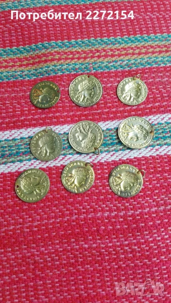 Позлатени монети за накит 9 бр, снимка 1 - Антикварни и старинни предмети - 51264218 Позлатени монети за накит 9 бр, снимка 2 - Антикварни и старинни предмети - 51264218 1/2