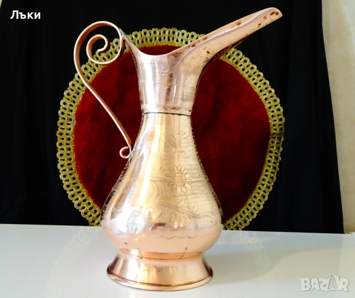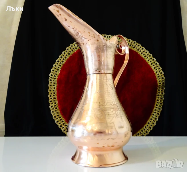 чиста червена мед.Декорирана с релефно писани цветя и орнаменти,които заради