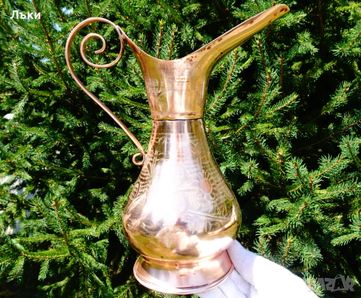 Старинна медна кана за вино,майсторска ръчна изработка от