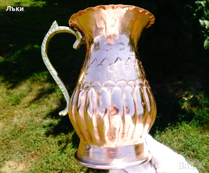от високо качествена масивна чиста червена мед.Декорирана с релефно ковани и
