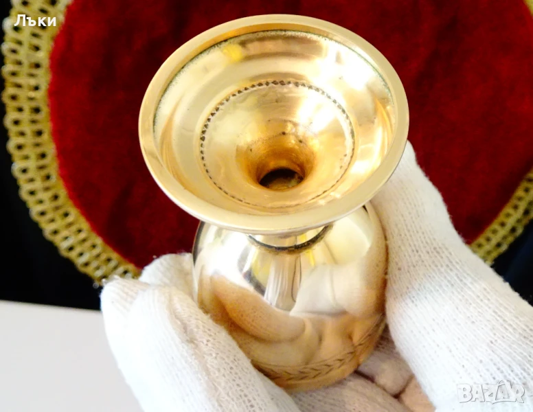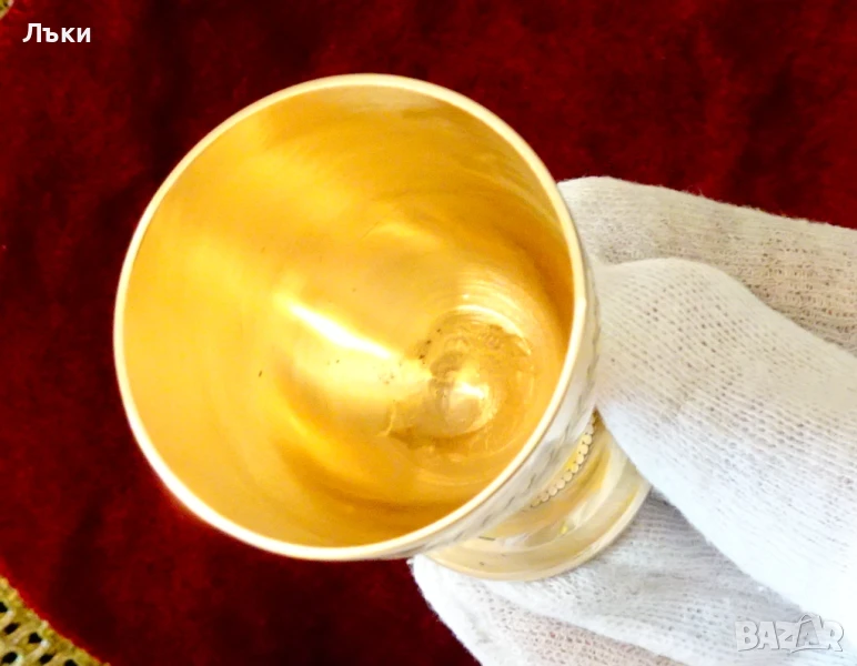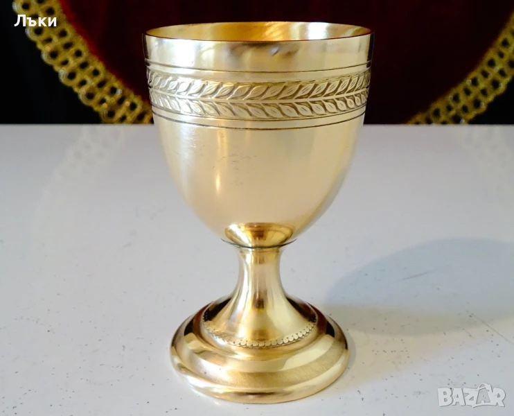 Старинна бронзова чаша за ракия,на столче,майсторска ръчна