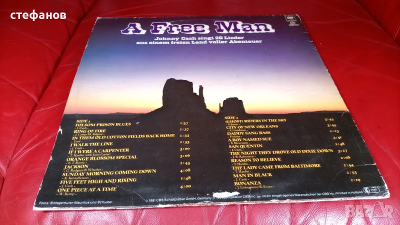 Дългосвиреща грамофонна плоча JOHNNY CASH a free man, Холандска преса