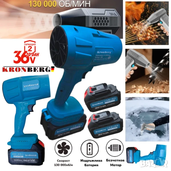 Турбо Пистолет Духалка 36V 10.0AH за Листа Сняг Автомивка Барбекю Огън и др. 2 батерии Мощен Пистолет KRONBERG