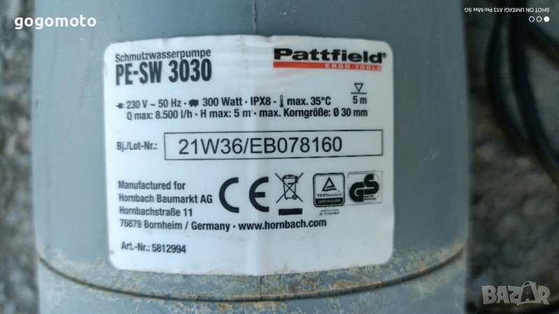 помпа за вода, всички данни са на снимките.