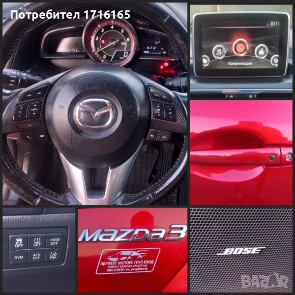 ЧЕРВЕН КОНЕЦ. Интериорът е в добро запазено състояние. Много добри летни гуми 2023 година с оригинални алуминиеви 18-цолови джанти MAZDА. Тонирани стъкла. ОРИГИНАЛНА АУДИО-СИСТЕМА BOSEС УНИКАЛЕН ЗВУК за слушане на желаната от Вас музика. Хром по прозорците. Наличен оригинален сваляем теглич с