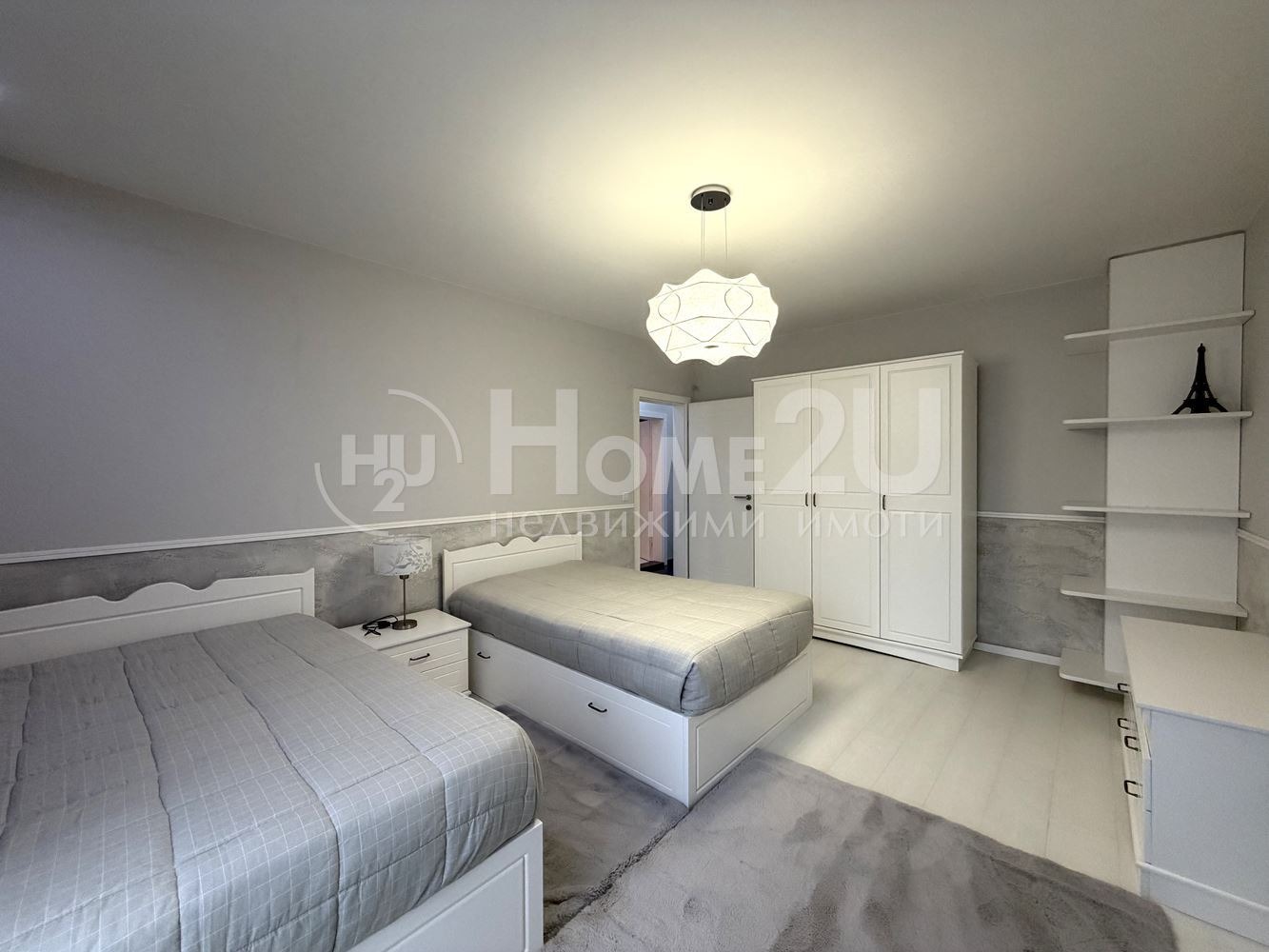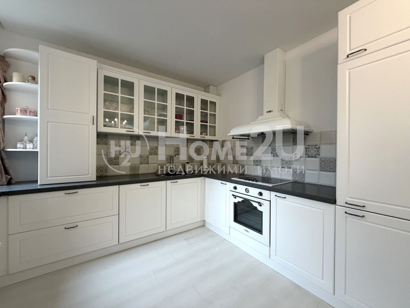 ХоумТуЮ има удоволствието да представи на Вашето внимание изключително уютен, просторен, светъл, обзаведен тристаен апартамент. Жилището се намира в сграда от 2017г., с контрол на достъпа, асансьор и перфектно поддържани общи части. Апартаментът има следното функционално разпределение: коридор, дневна с кухненски бокс и трапезария с излаз на тераса, две спални едната от които с излаз на тераса, баня с тоалетна, както и мокро помещение. Жилището е напълно обзаведено с всичко необходимо за едно домакинство. Отоплението е на газ. Има възможност за наемане на подземно паркомясто за допълнителна цена от 100 . Сградата е на много комуникативно място, находяща се на ул.Вера Мутафчиева 1А, само на 150 метра от Мол Парадайс и на 200 метра от Била. За Ваше улеснение прилагаме схема на разпределение на имота. Обади се сега и цитирай този код: 120706.