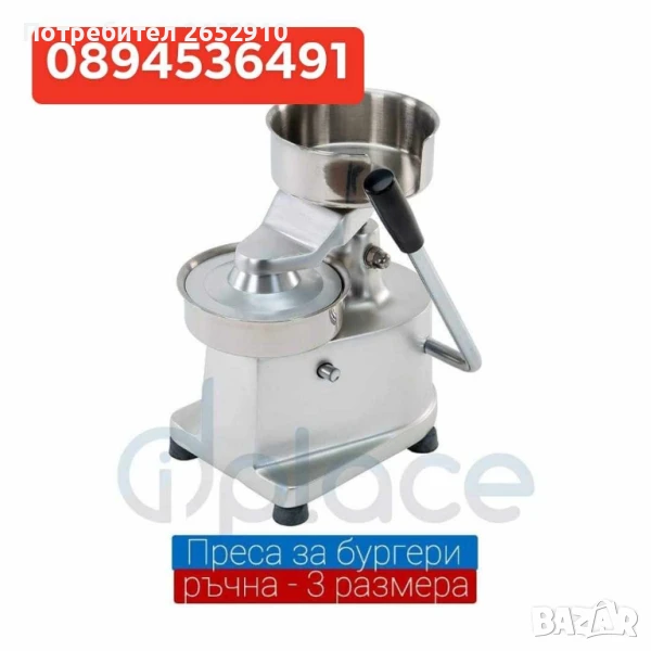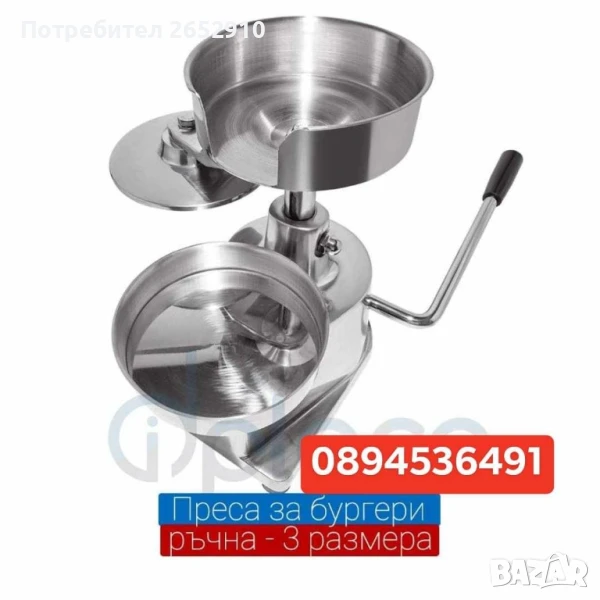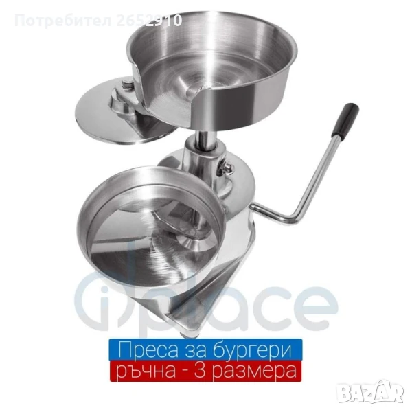 Бургер преси ръчни от неръждаема стомана! 3 Модела диаметър 100мм 130мм 150мм.ТопЦена 230лв/117,60€