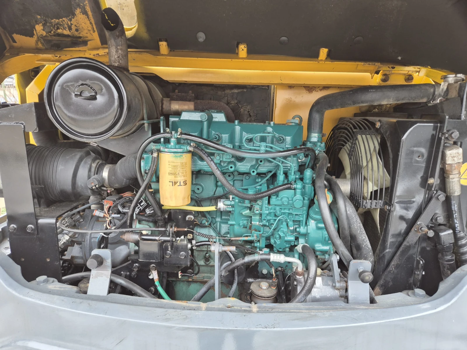 нов внос от Белгия, в уникално състояние. Производителност при изкопни работи Максимална дълбочина на изкоп: 3. 8 4. 0 метра Максимален радиус на работа: ~6. 2 метра Максимална височина на разтоварване: ~4. 1 метра Сила на кофата (Bucket force): ~ 48 50 kN Сила на стрелата (Arm force): ~ 32 34 kN ? Хидравлична система Тип помпа: Помпа с променлив дебит (помпа с променлив обем) Хидравличен дебит: ~ 158 L/min Хидравлично налягане: ~ 25 MPa (250 bar) Помощна хидравлична линия: Налична, подходяща за