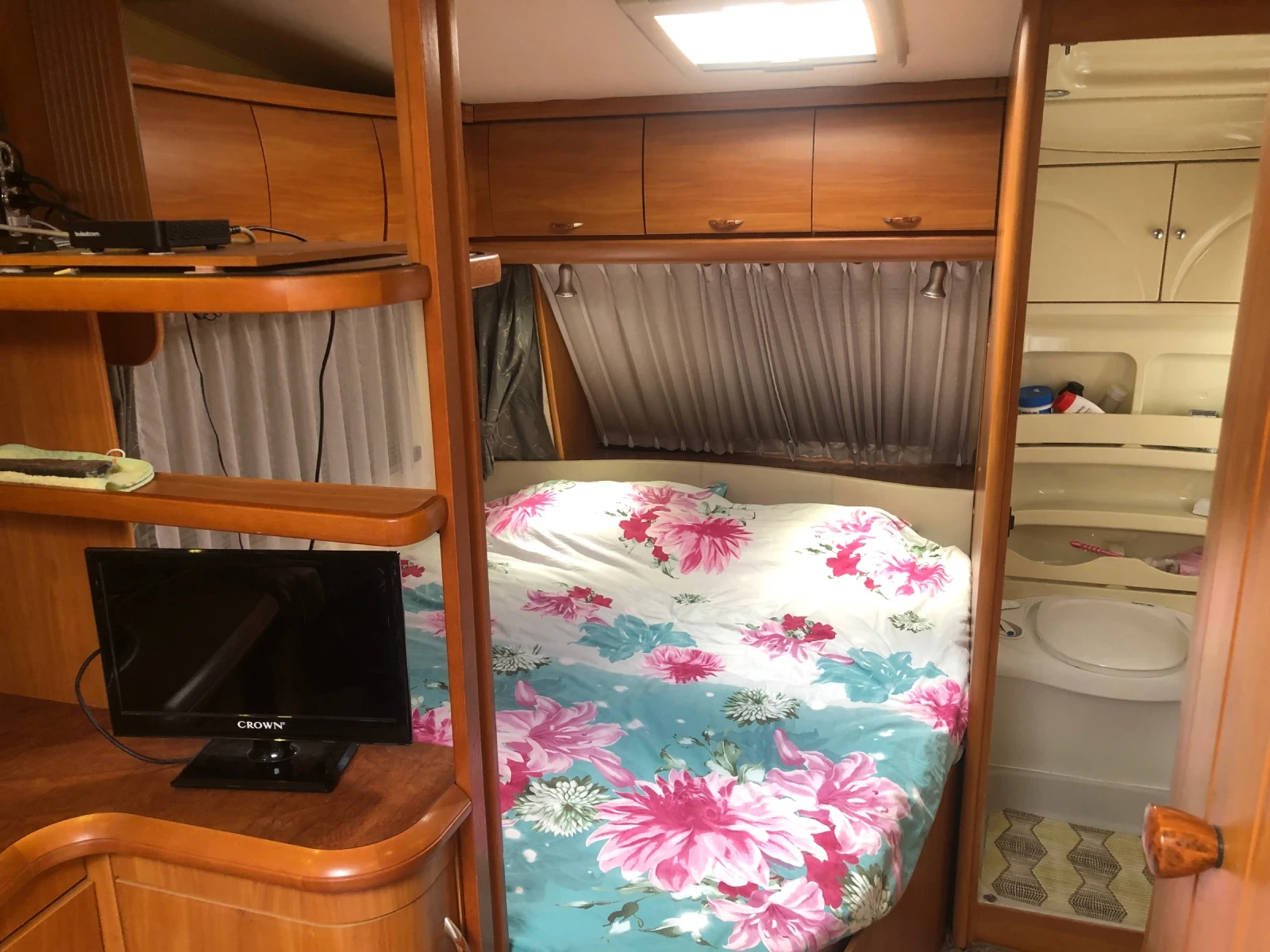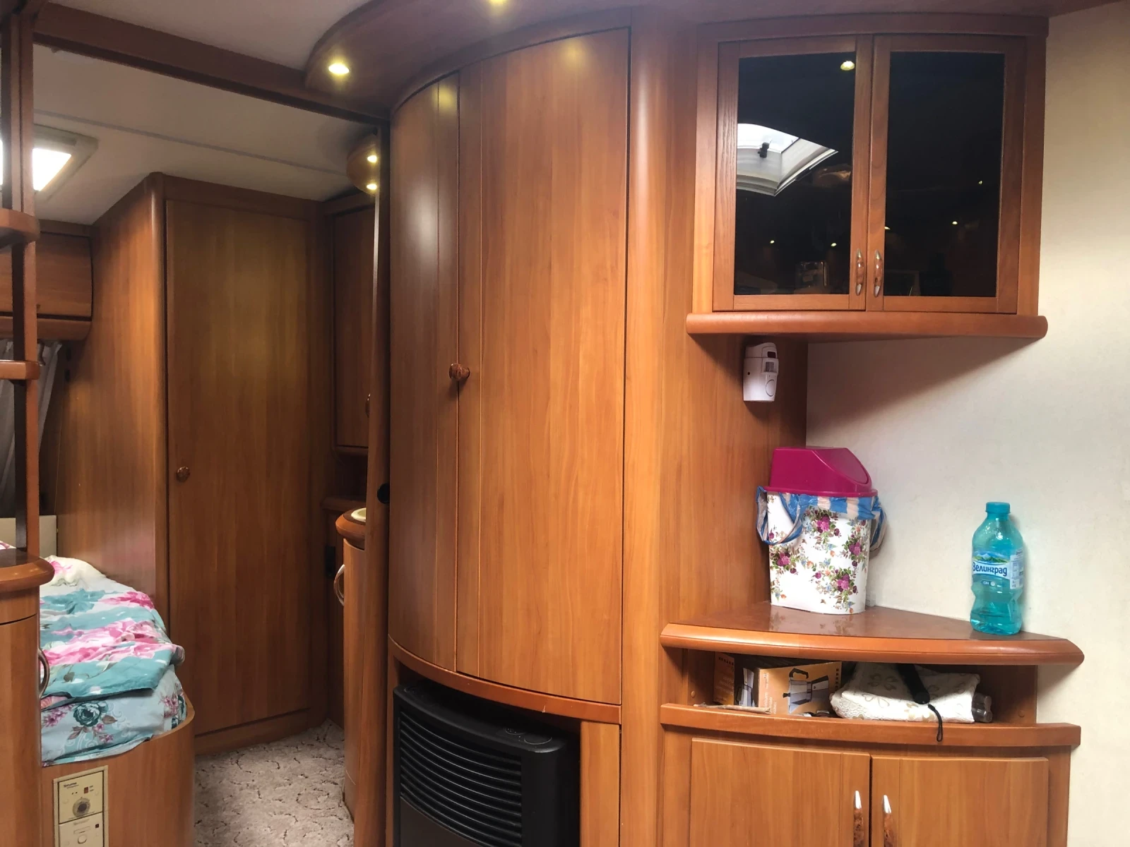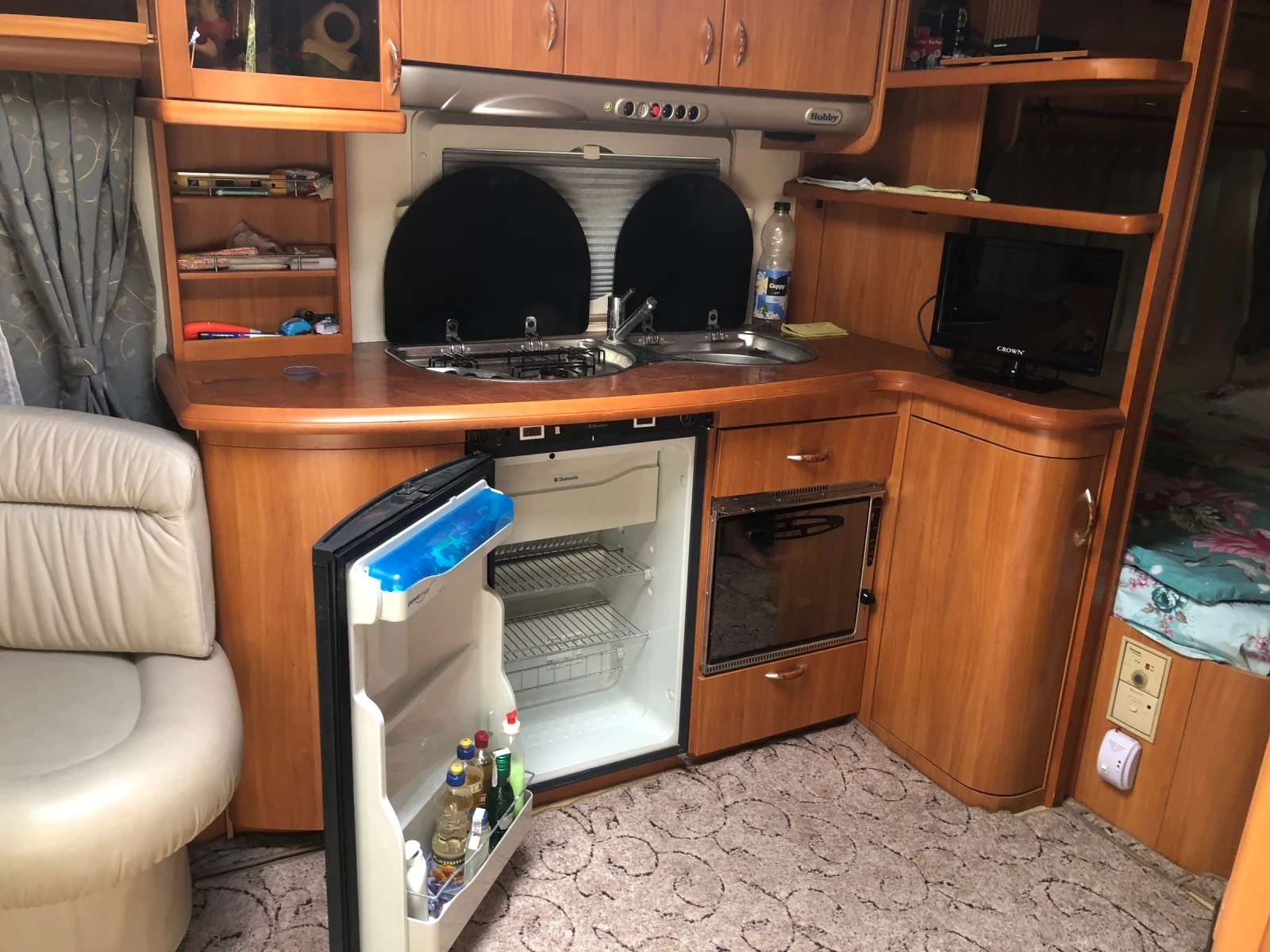 Напълно оборудвана без течове. Поръчково изпълнение , без удари и неприятни миризми. Готова за ползване. Разполага с голямо сапаре, което се преобразува на просторна спалня, газова печка за отопление. Truma, газова печка с три котлона и абсорбатор,