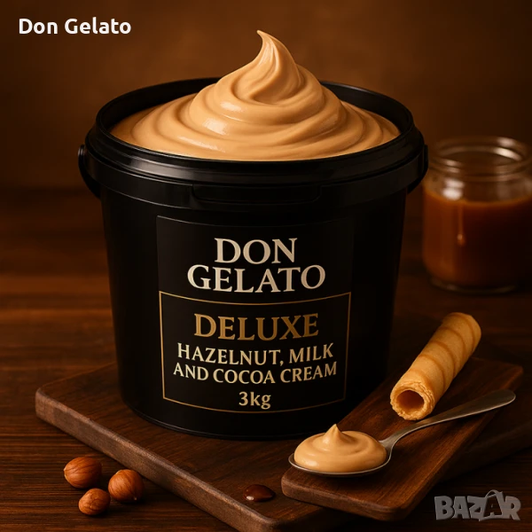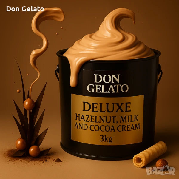Don Gelato Deluxe е професионален крем пълнеж с лешници, мляко и какао – вдъхновен от световноизвестните италиански кремове, създадени в град Алба – люлката на модерните шоколадови изкушения, дал на света и прочутата Kinder Bueno.