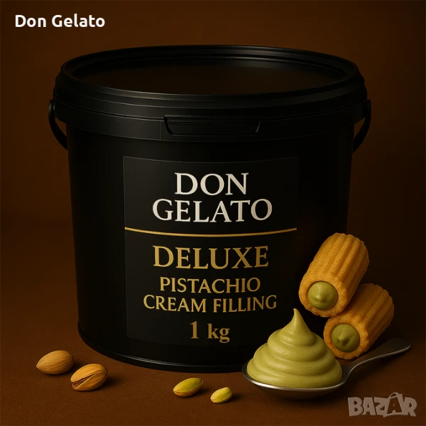 Don Gelato Deluxe е професионален крем пълнеж с шамфъстък – вдъхновен от световноизвестните ориенталски кремове, създадени в град Газиантеп – люлката на най-фините шамфъстъчени изкушения и вдъхновението зад десертите със злато, кадаиф и фъстък, превзели сладкарниците на Дубай.