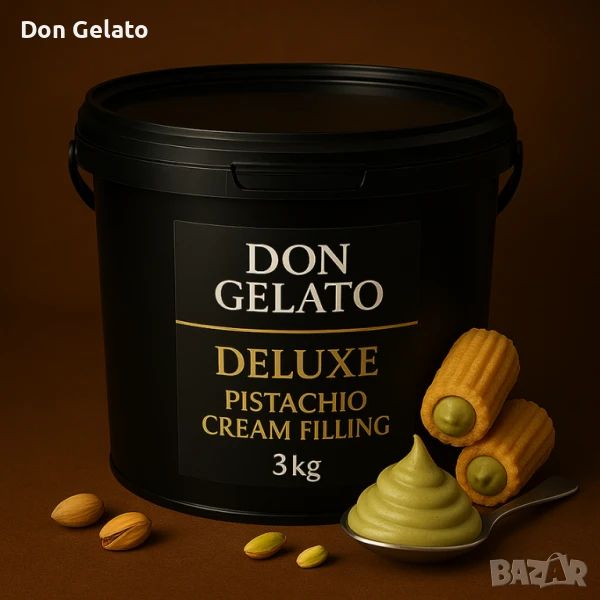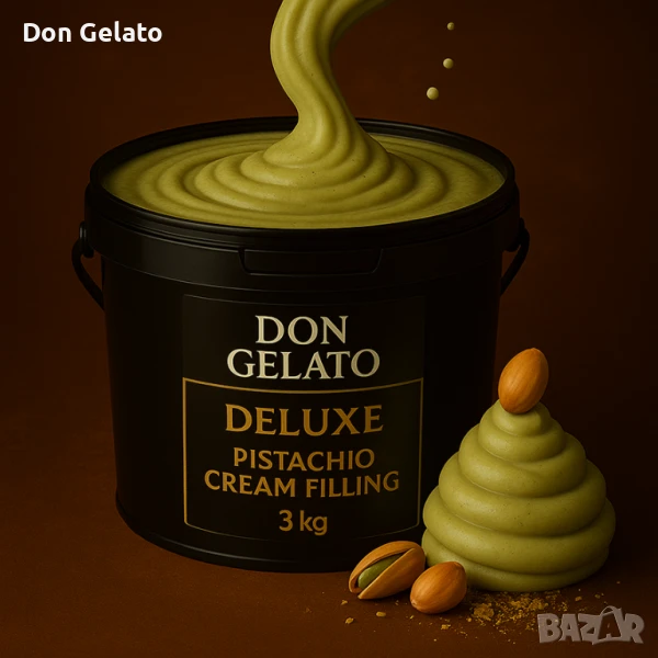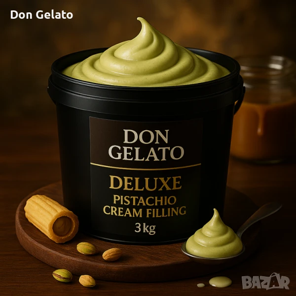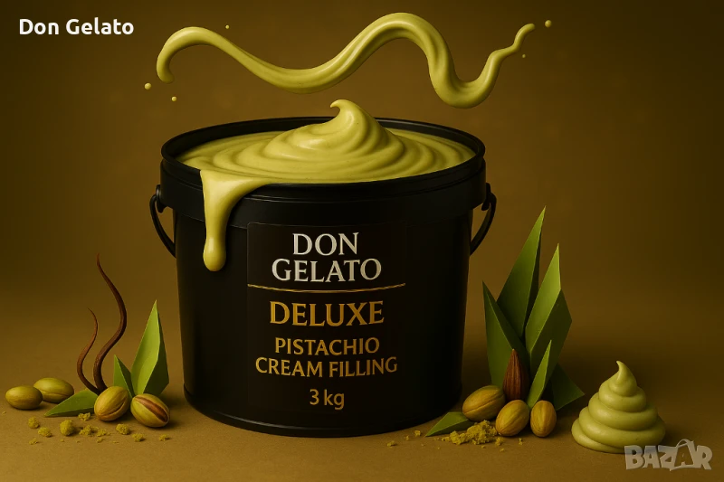 Don Gelato Deluxe е професионален крем пълнеж с шамфъстък – вдъхновен от световноизвестните ориенталски кремове, създадени в град Газиантеп – люлката на най-фините шамфъстъчени изкушения и вдъхновението зад десертите със злато, кадаиф и фъстък, превзели сладкарниците на Дубай.