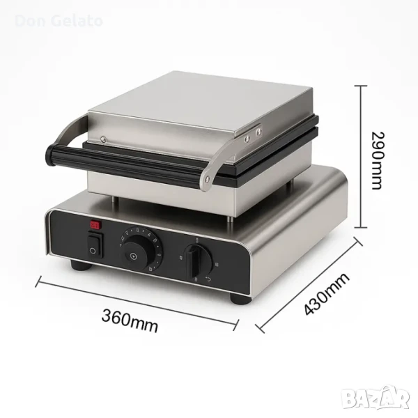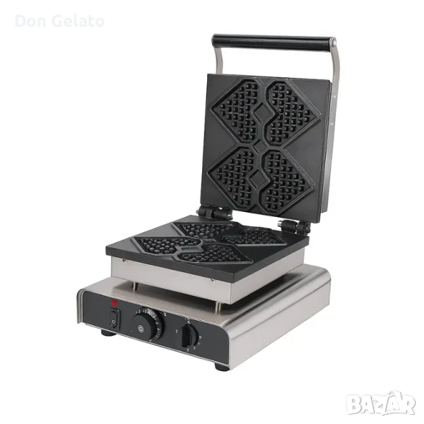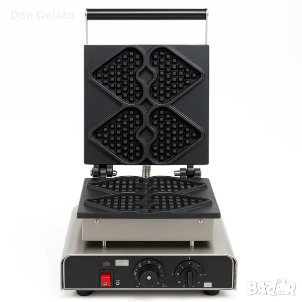 Професионалният гофретник Hearts Waffle от Don Gelato е създаден за атрактивно приготвяне на четири гофрети с форма на сърца на клечка – идеални за събития, сезонни кампании и постоянен асортимент в заведенията. С мощност от 1750W, корпус от неръждаема стомана и алуминиеви плочи с незалепващо покритие, уредът съчетава бързина, стил и ефективност.