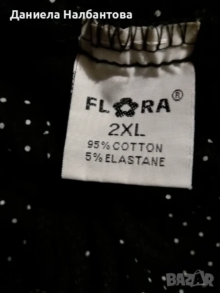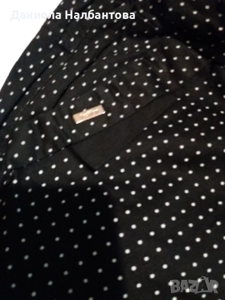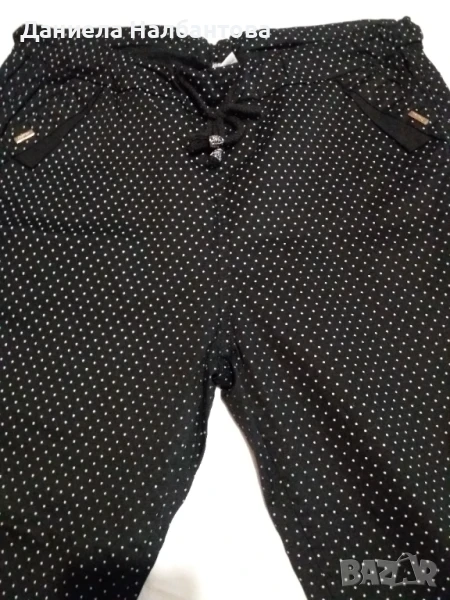 Панталон черен на малки бели точки, размер 2XL. Талията е висока и с ластик.