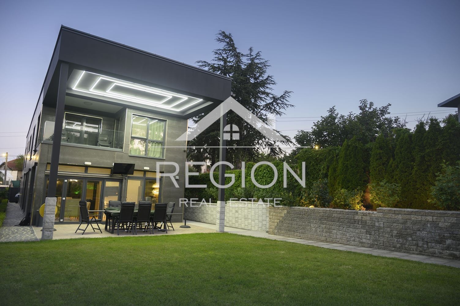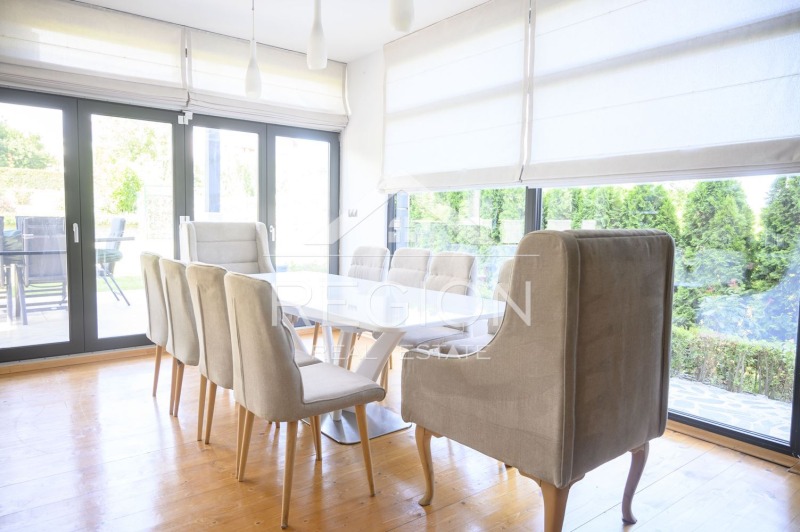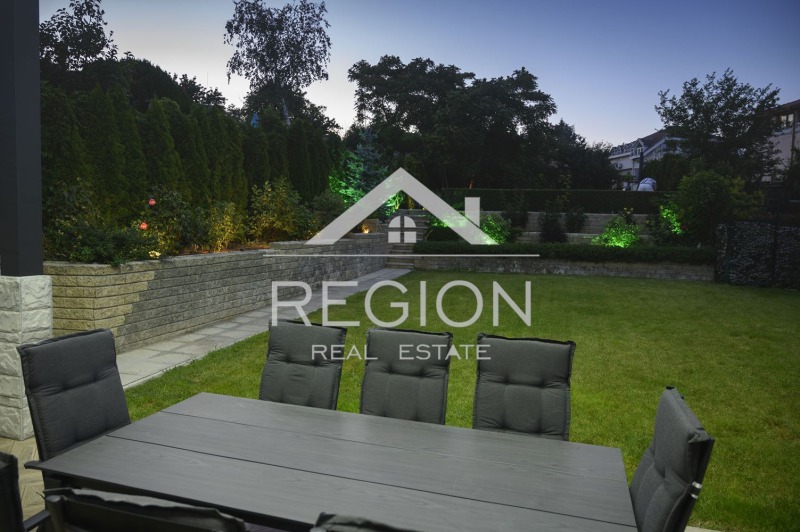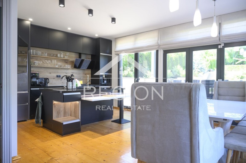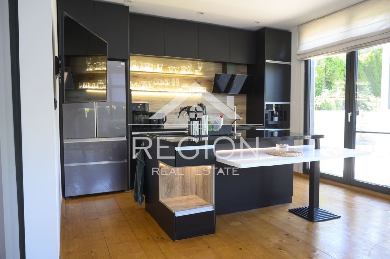 Луксозна къща по дизайнерски проект. Къщата е на два етажа и има следното разположение.На първи етаж се намира голям гаражза два автомобила, коридор ,една спалня,баня и тоалет, килер,всекидневна ,кухня и веранда. На втори етаж се намират 3 спални,2 бани тоалет,сауна,парна кабина,работен кабинет с