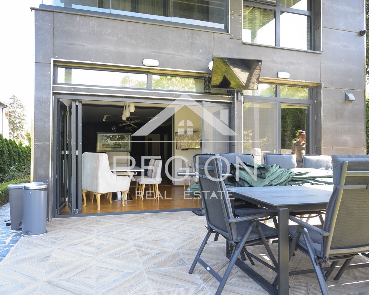 масажен стол,тераса с маса и два шезлонга.