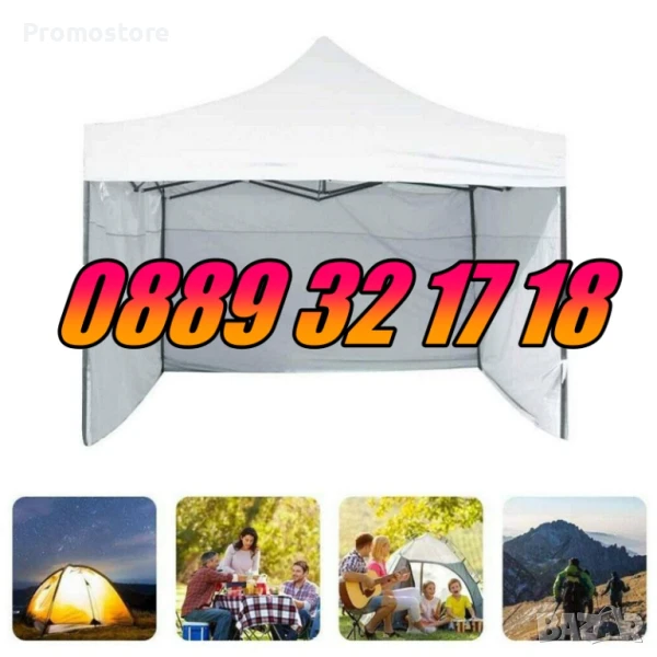 Градинска сгъваема шатра 3х3 м с три страници, шатра хармоника 3х3