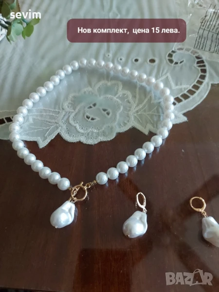Нови перлени комплекти. Нямат специална кутия. Цената е на снимките на всеки артикул. Цената варира от 12 лева до 25 лева. Изпращам само с еконт.