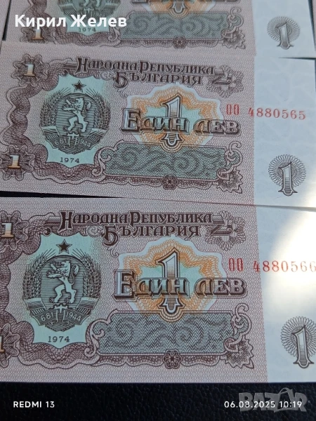 Шест банкноти 1 лев 1974г. НРБ нови в перфектно състояние за КОЛЕКЦИОНЕРИ 50715