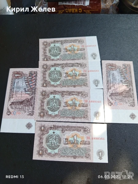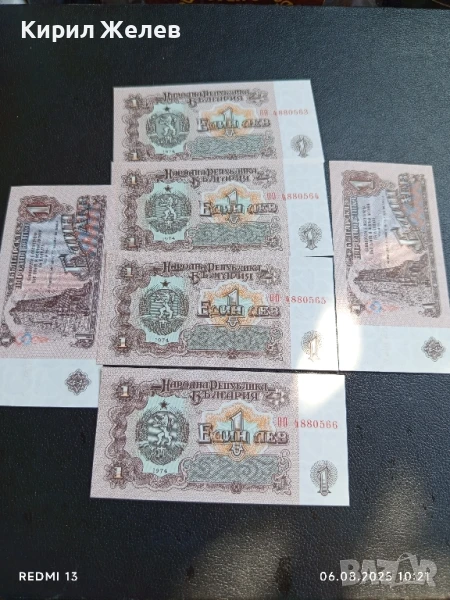 Шест банкноти 1 лев 1974г. НРБ нови в перфектно състояние за КОЛЕКЦИОНЕРИ 50715 → Обява 51270100