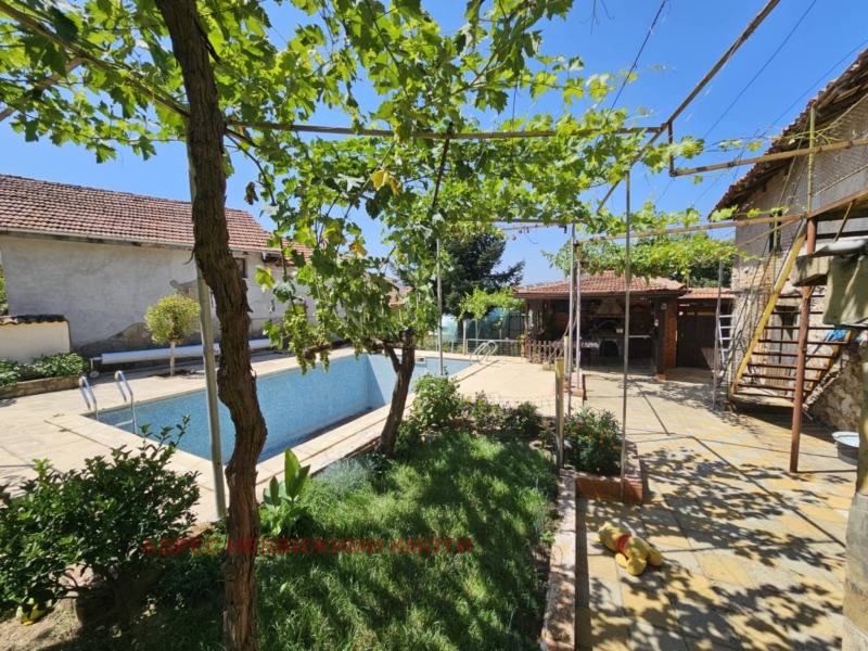 АДРЕС недвижими имоти продава КЪЩА в с. Змейово , Стара Загора.На парцел с площ от 800 кв.м са разположени двуетажна масивна жилищна сграда, , стара къща с тухлен зид, гараж, и друга масивна жилищна сграда с възможност за заведение, магазин или др.,допълнителни стопански постройки, басейн. Двуетажната къща е със следното разпределение: първи етаж - кухня, антре, трапезария , санитарен възел и всекидневна; втори етаж- три спални, антре, тераса, баня с тоалетна. Имотът е обзаведен и оборудван с всичко необходимо. Дворът е поддържан,има басейн и барбекю.