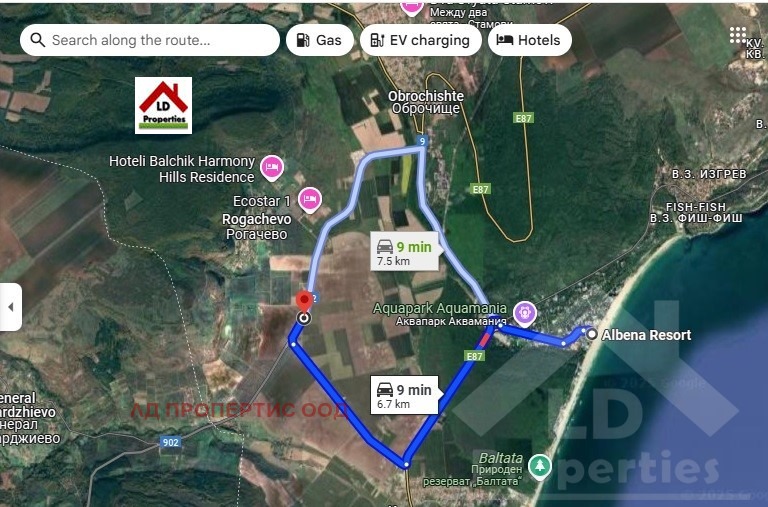 Предлагаме за продажба осем съседни парцела, разположени в землището на село Рогачево, община Балчик, местност ПАНДАКЛИЯТА . Село Рогачево е разположено на 28 км северно от гр.Варна и на 4км от курорта Албена. На 12 км е гр.Балчик, известен с богата си ботаническа градина и дворецът на кралица Мария. В близост са разположени две професионални голф игрища и едно голф училище, както и резерват 'Батова', богат на дивеч и подходящ за ловен туризъм. Рогачево е уникално място с невероятна комбинация от море, планина, изключително чист въздух и много слънчеви дни.