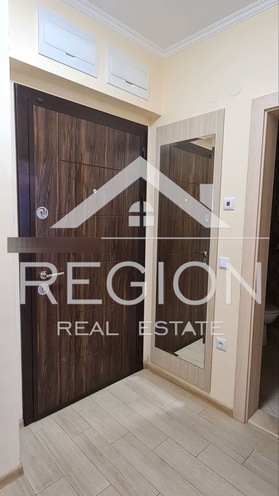 Агенция за недвижими имоти Регион отдава под наем двустаен апартамент в жилищна сграда ново строителство с контролиран достъп.Състоящ се от кухня с дневен тракт,спалня,коридор,баня с тоалетна,сервизно помещение и балкон.Отдава се за първи път,до момента е използван за кратко от собствениците.В отлично състояние,с електроуреди AEG-пералня,сушилня,фурна,плот с 4 котлона,