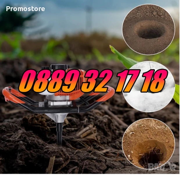 Моторен Бензинов Свредел за дупки 72 куб, свредло, колове, огради, лозя