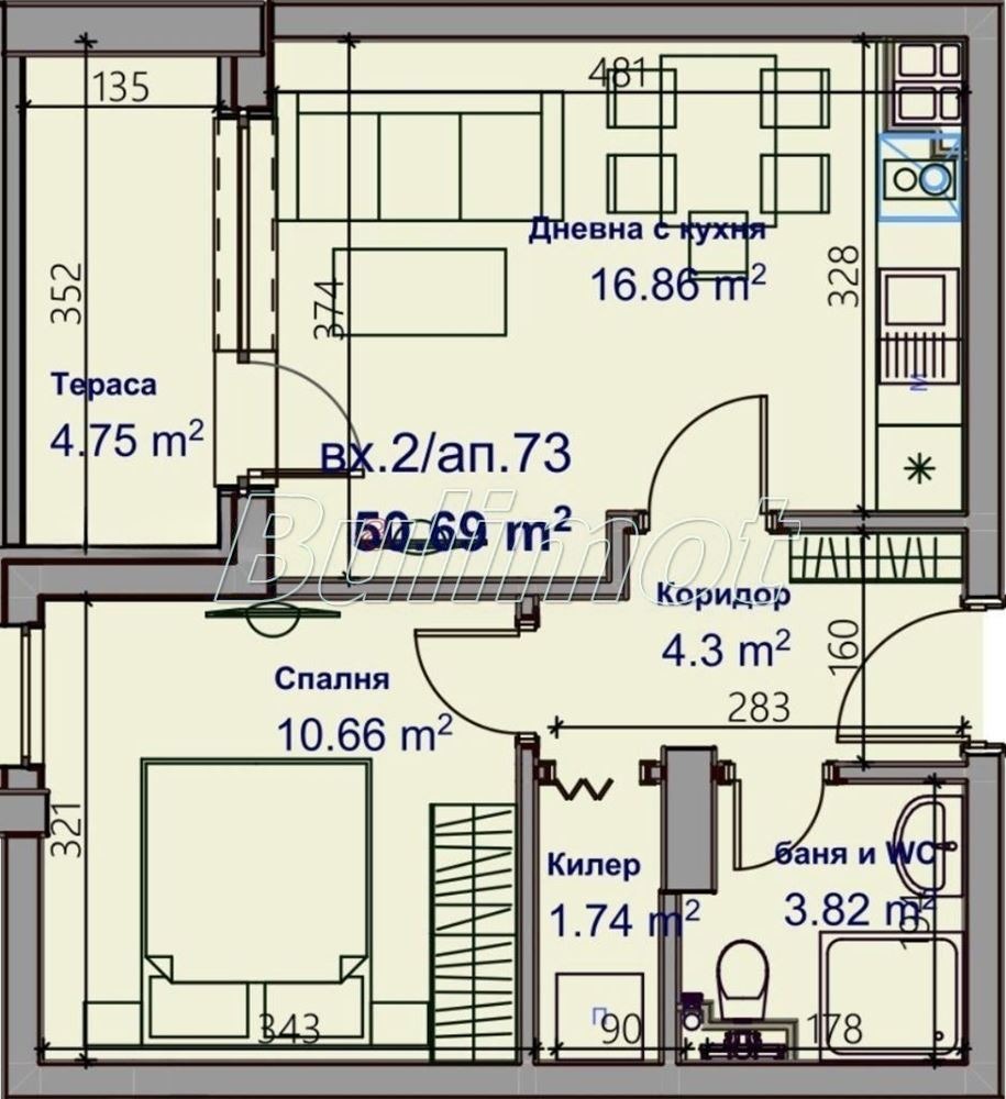 - Дневна с кухненска част;