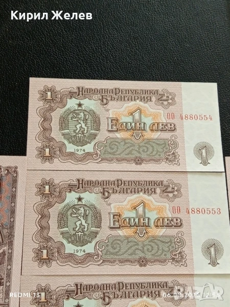 Шест банкноти 1 лев 1974г. НРБ нови в перфектно състояние за КОЛЕКЦИОНЕРИ 50739