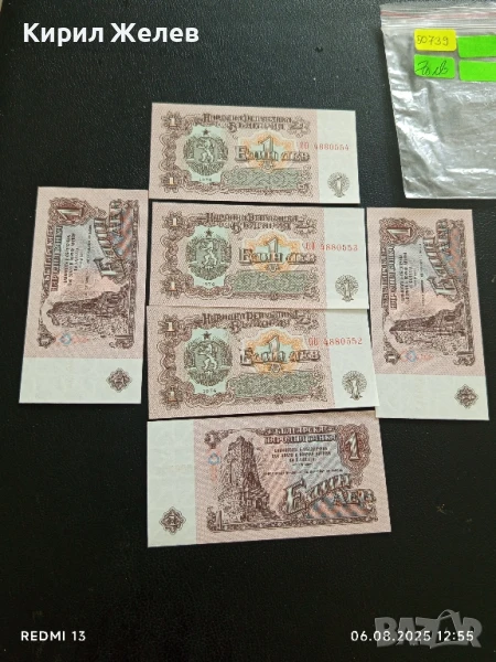 Шест банкноти 1 лев 1974г. НРБ нови в перфектно състояние за КОЛЕКЦИОНЕРИ 50739 → Обява 51272162