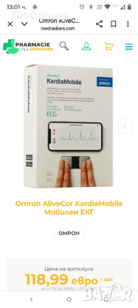 AliveCor KardiaMobile 1L е джобно устройство за персонален ЕКГ, което работи с вашия смартфон