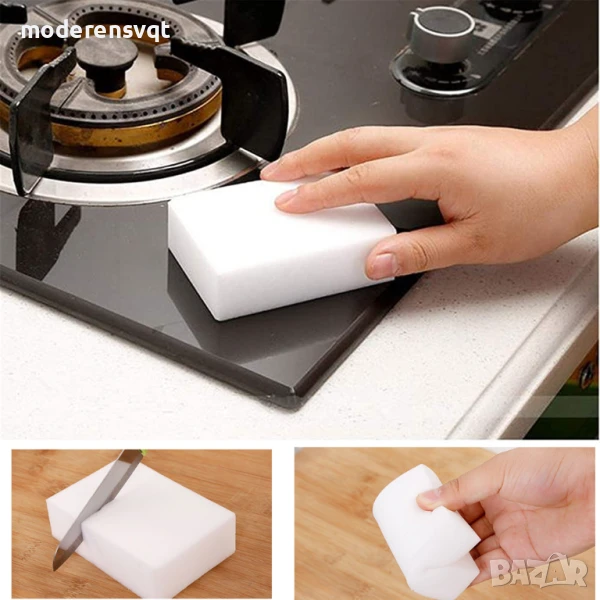 Меламиновите гъби почистват почти всичко! Не случайно се нарича „магическа гъба“ има свойството да премахва упорити замърсявания БЕЗ препарати. Необходимо е само да е намокрена и е готова за употреба.