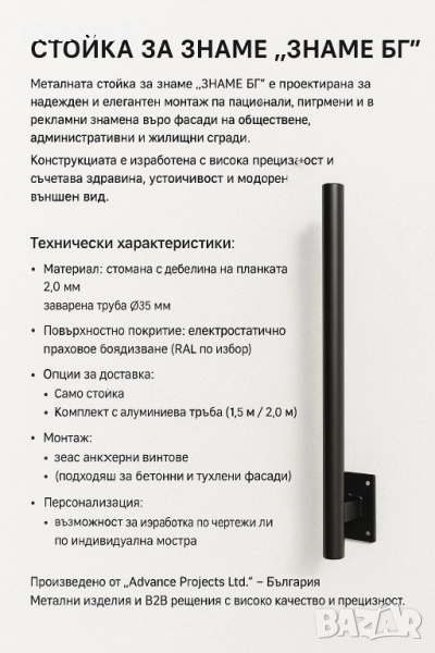 Материал: стомана с дебелина на планката 2.0 мм, заварена тръба Ø35 мм