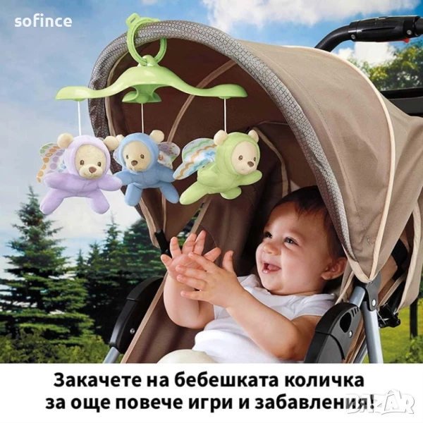 Спомага за по-лесното приспиване на Вашето дете, подобряване на неговите зрителни и слухови възприятия, развитие на неговата координация и разпознаването на различните форми и цветове.
