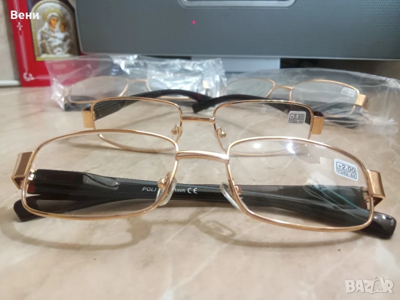 Универсални диоптрични очила с метална рамка. Мъжки, дамски. С пластмасови дръжки и пружинки на тях. Налични в /+2.00, +2.50,+3.50, +4.00/ диоптъра. Реални лични снимки. Изпращам със Спиди или Еконт с преглед и проба!