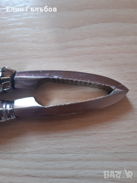 Дължината на металната част за трошенето на черупчестите ядки (орехи и други) е - 9.5 сантиметра .