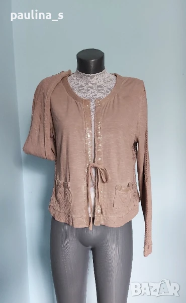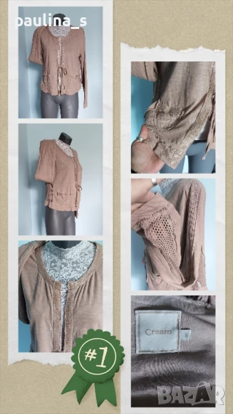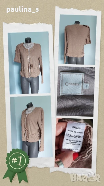 1️⃣. Колаж / L / 3XL - "Cream". Цената е крайна 29,99лв / 15 евро. Жилетка тип с мрежа и прозрачни пайети. Материята е 100% памучно трико и мрежа, много еластична и покрива няколко размера. По етикет е S, но е Овърсайз и отговаря до 3XL. Изработка е без подгъви и оверлог, с накъсан и изнищен ефект. Жилетката е нова, много тренди и ефектно и събира погледите. Без дефекти, ново без еткет.