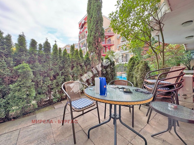 Имотът има жилищен статут; Има надземно паркомясто; Сградата има асансьор; Продава се с обзавеждане, което подлежи на уточнение; Има физическа охрана; ЕТАП НА СТРОИТЕЛСТВО: разрешение за ползване (Акт 16); ОТОПЛЕНИЕ: климатик; Има 1 балкон/тераса; С довършителни дейности; Има такса поддръжка; Непреходен; Целогодишно ползване; ВИД СТРОИТЕЛСТВО: тухла; ГОДИНА НА СТРОИТЕЛСТВО: 2010 г.; ИЗЛОЖЕНИЕ: гледка към басейна, гледка към озеленен двор; СПАЛНИ: 2; БАНИ: 2; ДОГРАМА: PVC