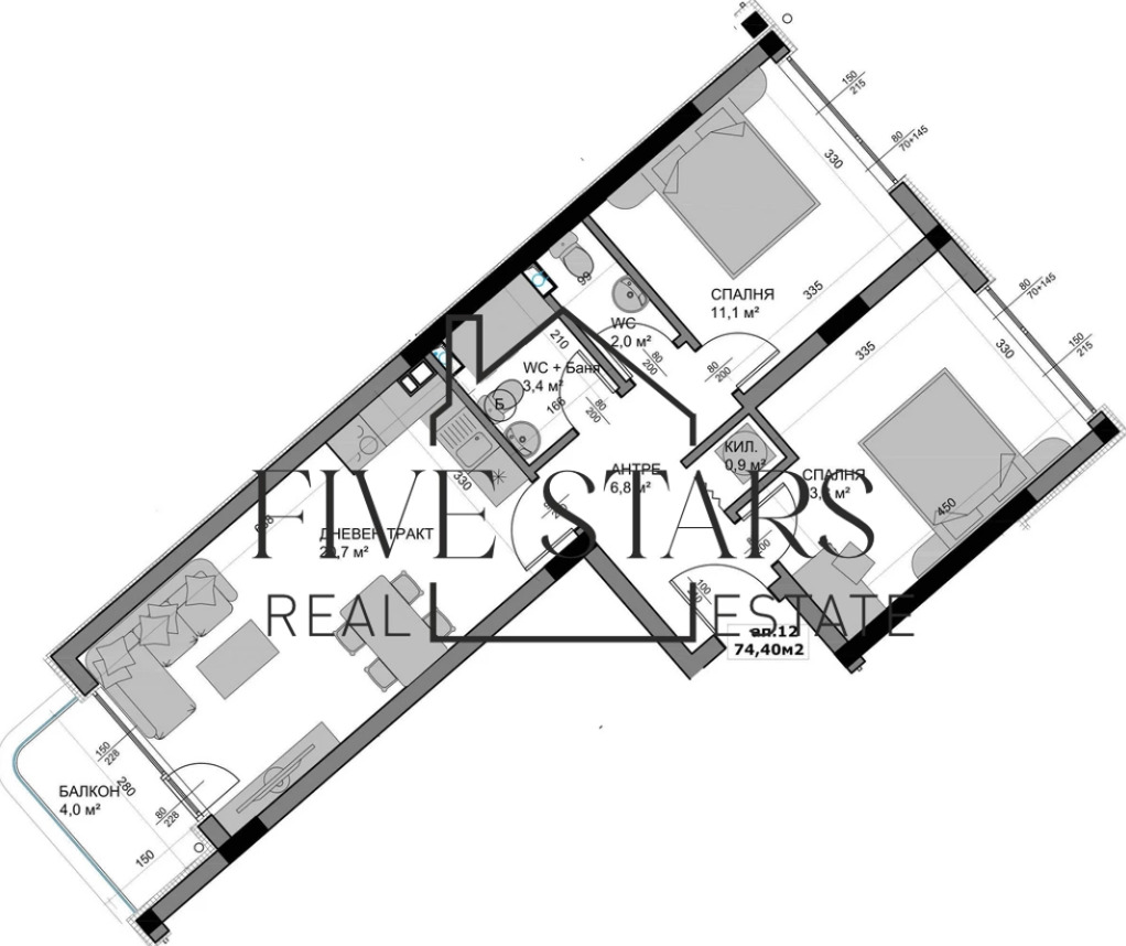 Файв Старс недвижими имоти предлага за продажба тристаен апартамент състоящ се от : коридор, дневен тракт с кухненски кът с излаз на тераса, две спални, баня с тоалетна, още една тоалетна и килер/перално . Към жилището има възможност за закупуване на открито или закрито паркомясто. Файв Старс недвижими имоти съдейства на своите клиенти при нужда от банков кредит при преференциални условия от водещите банки в страната. За повече информация и огледи - Николай Илиев - 0899 70 49 49