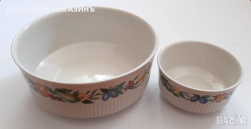 Малката е в отлично състояние, голямата е използвана, леки следи по дъното вътре, има и една фабрична точка до плодовете, снимана и се вижда