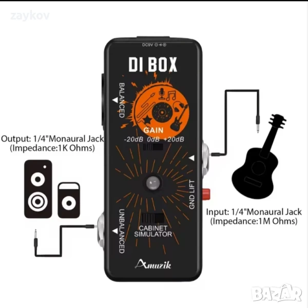 Amuzik di caixa педал за китарни ефекти, кутия за директен вход