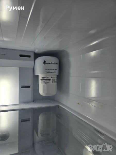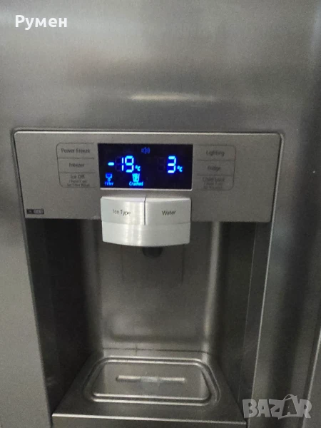 Двукрилен хладилник с фризер, ледогенератор, директна връзка за студена вода с чисто нов филтър . Много запазен цвят инокс, работи перфектно.