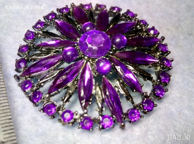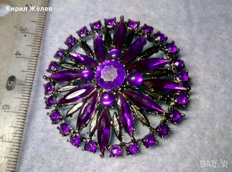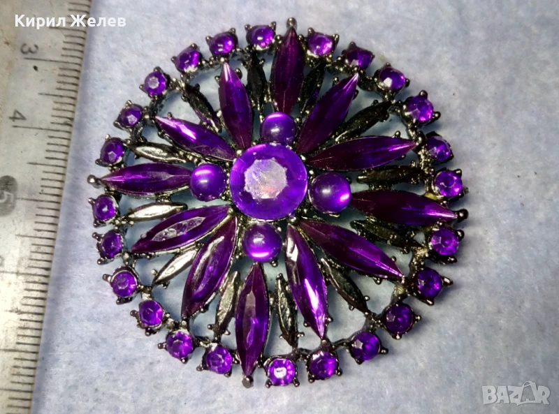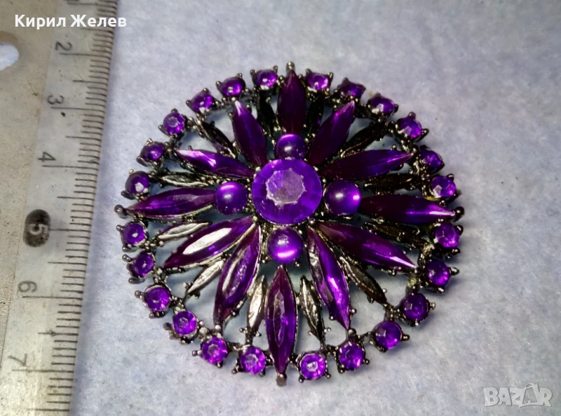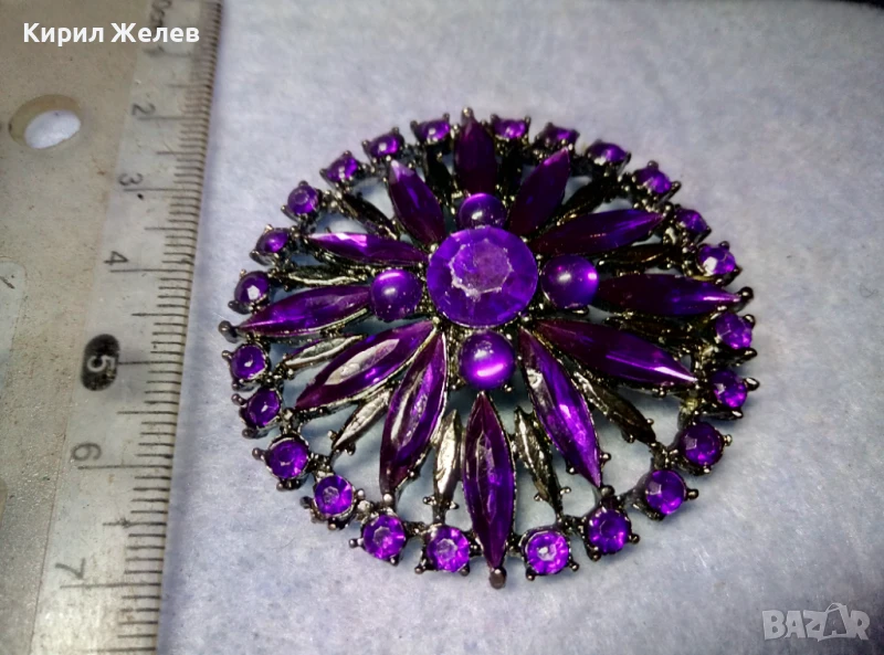 СТИЛНА СРЕБРИСТА КРИСТАЛНА БРОШКА с НУЖДА от НОВА ИГЛА ПОДХОДЯЩА и За МЕДАЛЬОН 48786