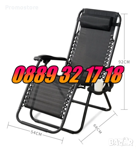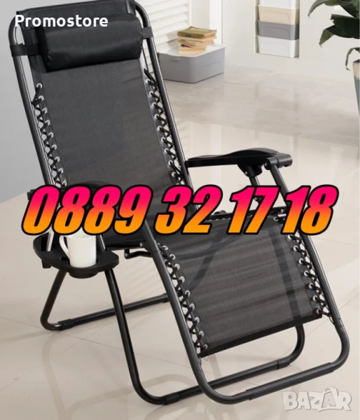 Градински сгъваем шезлонг,шезлонг за плаж с поставка за чаша и телефон