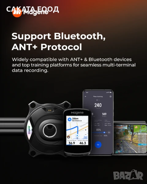 Използвай го с устройства, които пожелаеш Magene PES 515 поддържа Bluetooth, ANT+ протоколи.