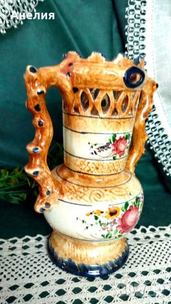 Украсена ваза или кана - фаянс от майолика, подпис на Robbia.