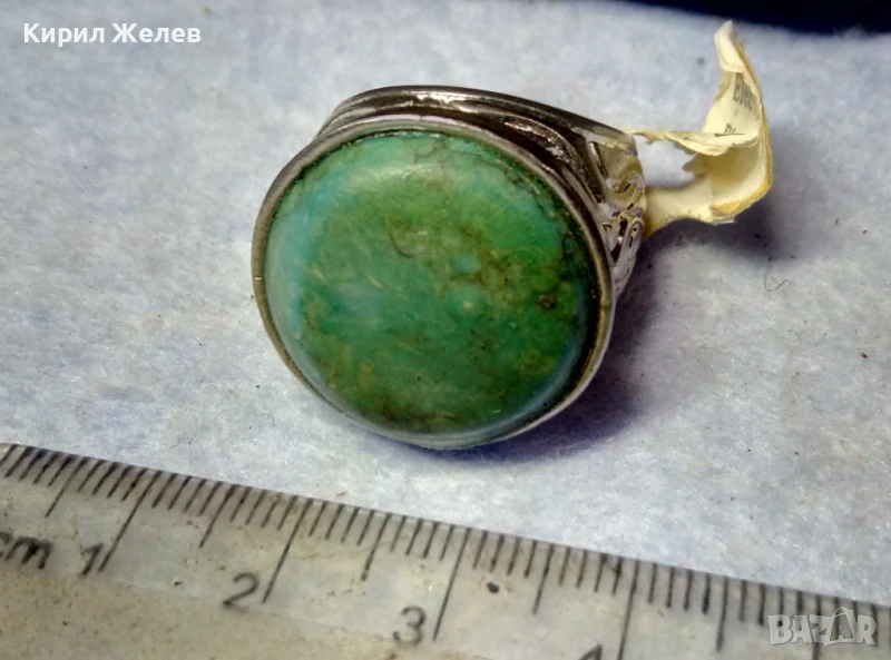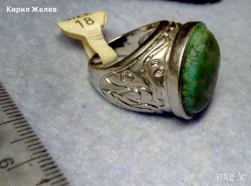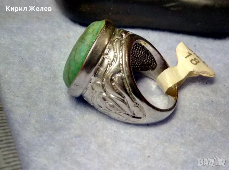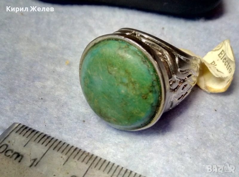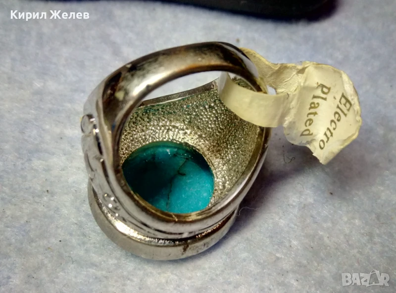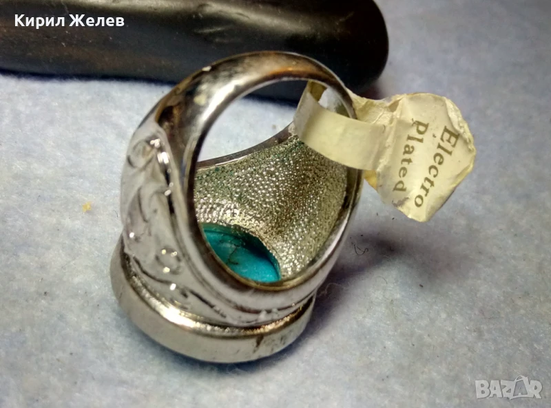 КРАСИВО ОРНАМЕНТИРАН ПОСРЕБРЕН БРОНЗОВ ПРЪСТЕН с НАТУРАЛЕН ТЮРКОАЗ 48882