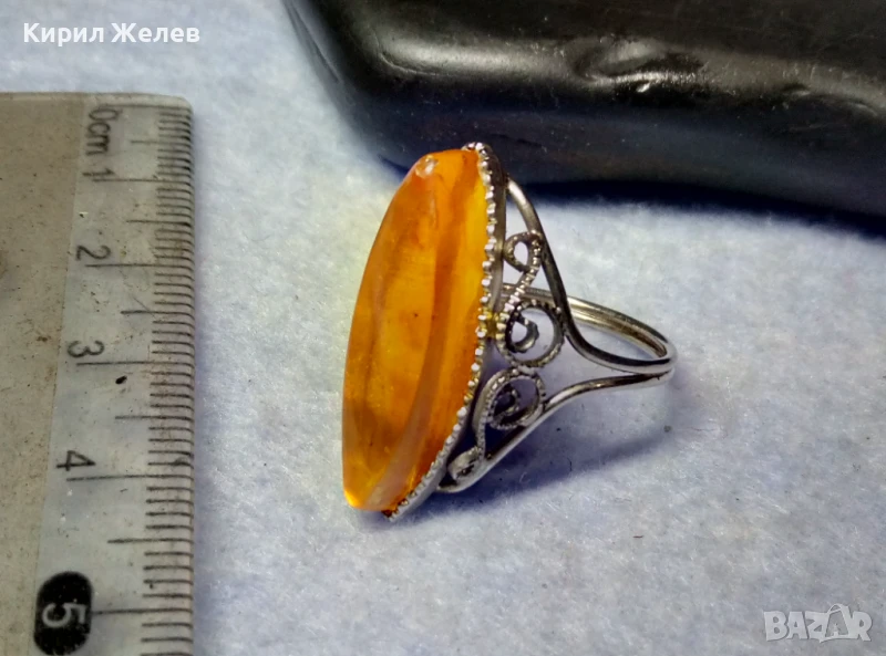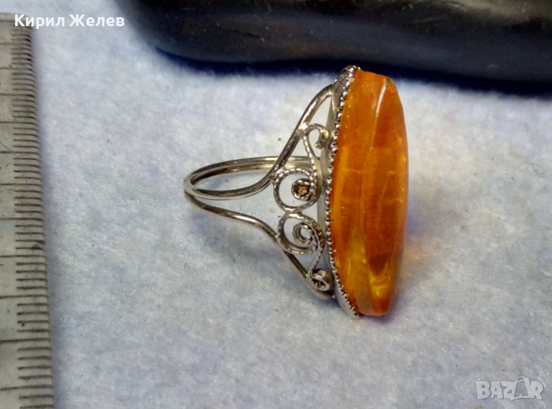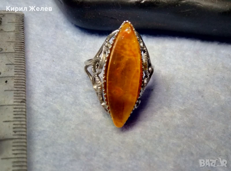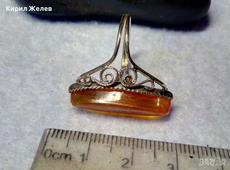 НИКЕЛИРАН РУСКИ КЕХЛИБАРЕН ПРЪСТЕН от БЛАГОРОДНА СТОМАНА ФИЛИГРАНЕН РЕТРО АРТ МОДЕЛ 50201