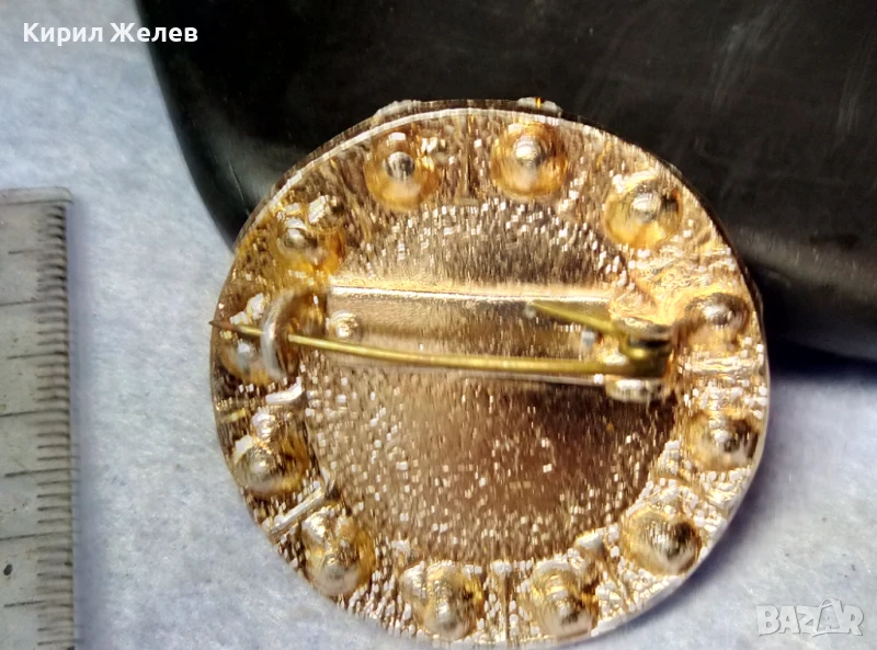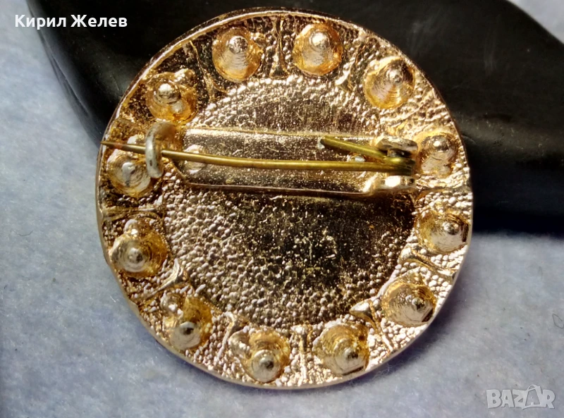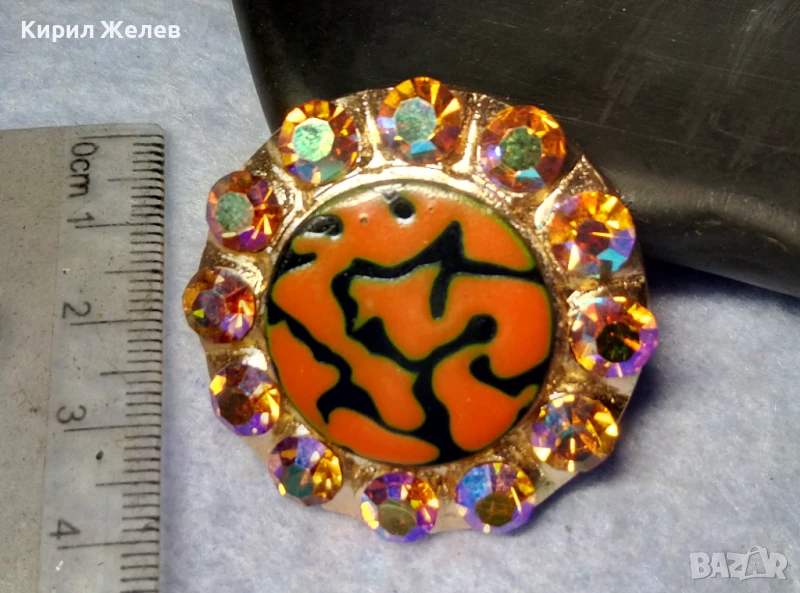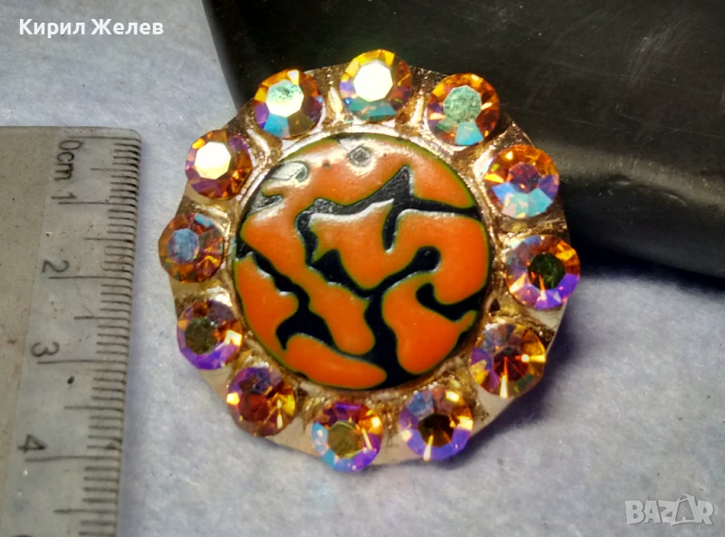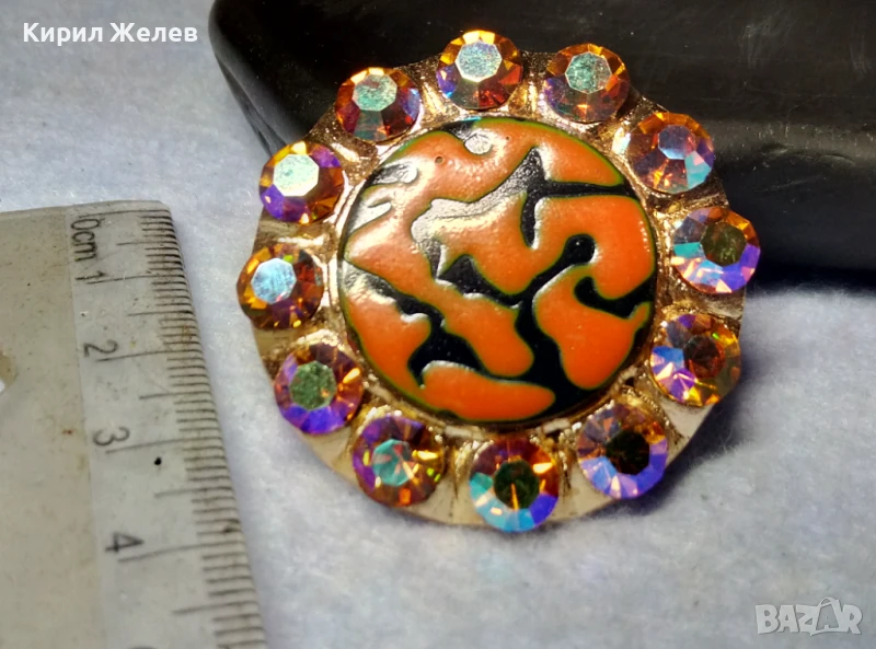 ЕМАЙЛИРАНА ПОЗЛАТЕНА ВИНТИДЖ СТИЛ БРОШКА с БЛЕСТЯЩИ БОХЕМСКИ КРИСТАЛИ 20348